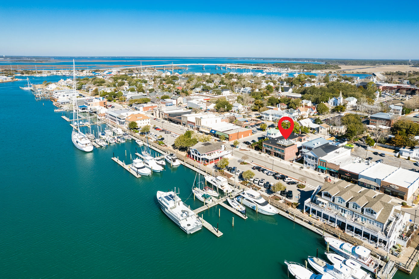 This is a 286 sq ft rooftop studio condo in a historic building in the center of downtown Beaufort. This unit has been completely renovated and designed and includes a comfortable queen bed with a Kitchenette and beautiful mosaic tile work in the shower and floors. There is a private rooftop deck overlooking the harbor where you can enjoy sunrises or sunsets with your coffee or cocktails.
